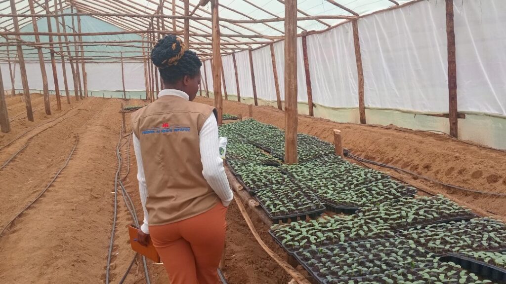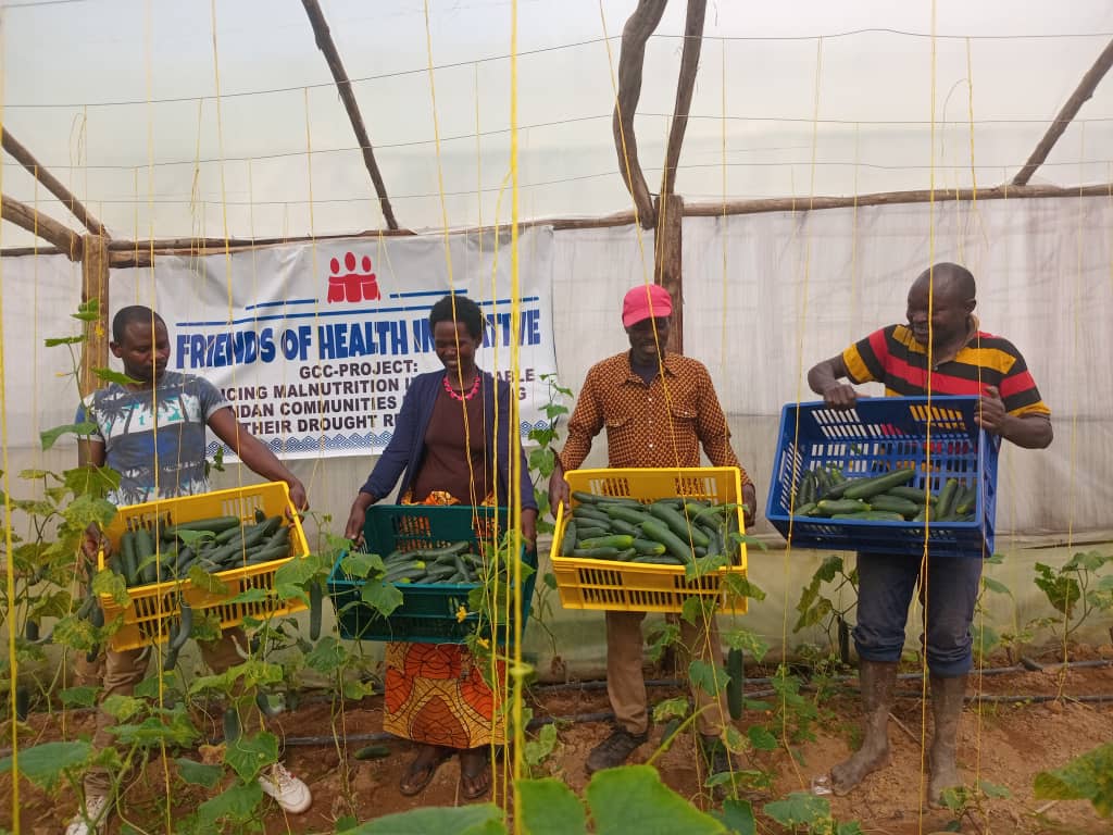 The project also supports the establishment of 10 farmer groups that serve as savings and learning hubs. Members receive seeds, tools, and technical guidance to manage greenhouse farms producing diverse, nutritious crops such as tomatoes, beans, cucumbers, and peppers. In addition, 20 peer educators have been trained to extend knowledge on water harvesting, composting, and nutrition-sensitive agriculture to other community members.